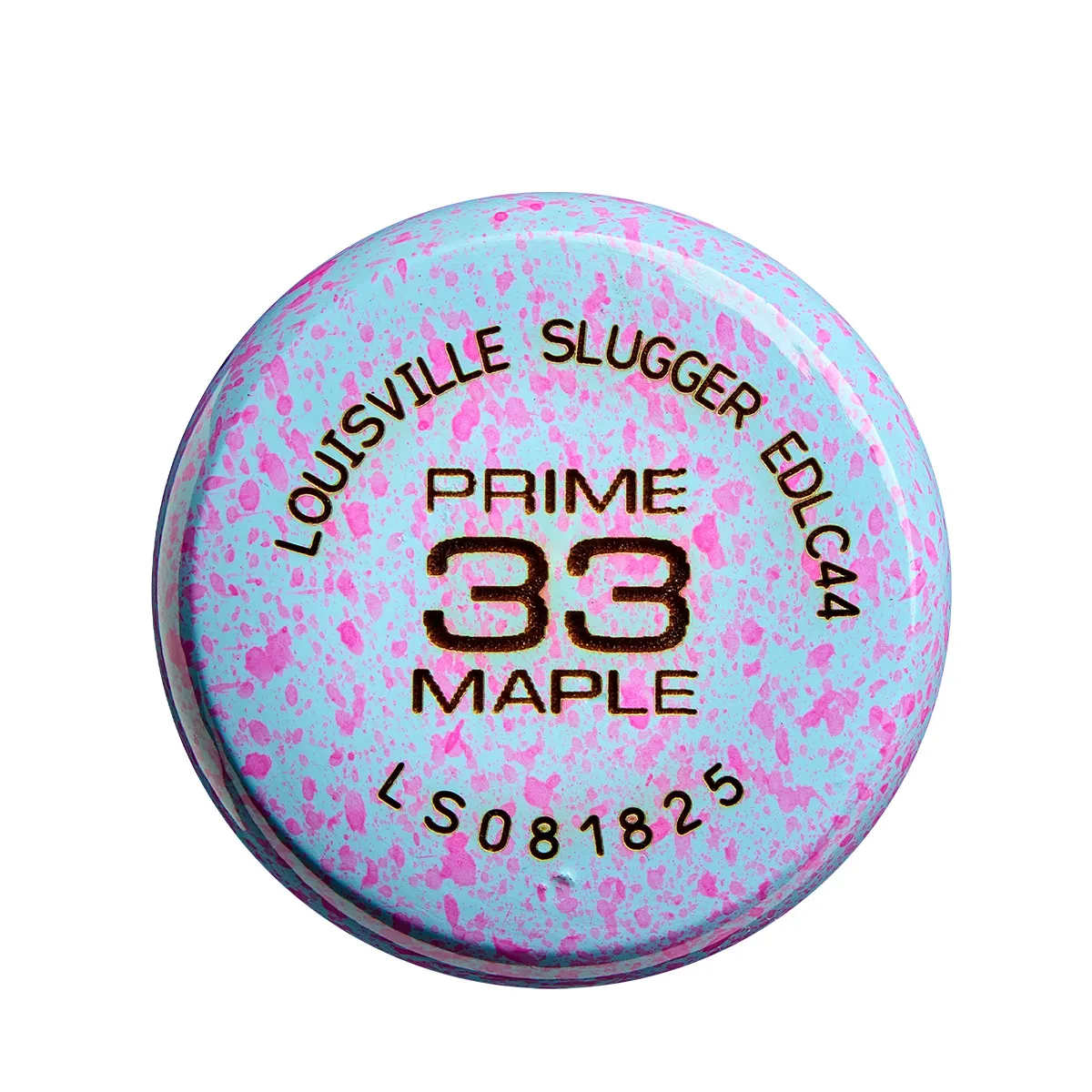 The Pro Prime EDLC44, a maple baseball with a slightly-endloaded swing weight, is perfect for run producers and stronger hitters looking for a more whip-like feel. A light blue base with neon pink splatter creates a lavender-like appearance, complete with white Seamless Decals. A re-engineered surface hardening process, including our Professional Series Finish cured with UV light treatment, results in bats 30% harder than previous Louisville Slugger Prime models.
