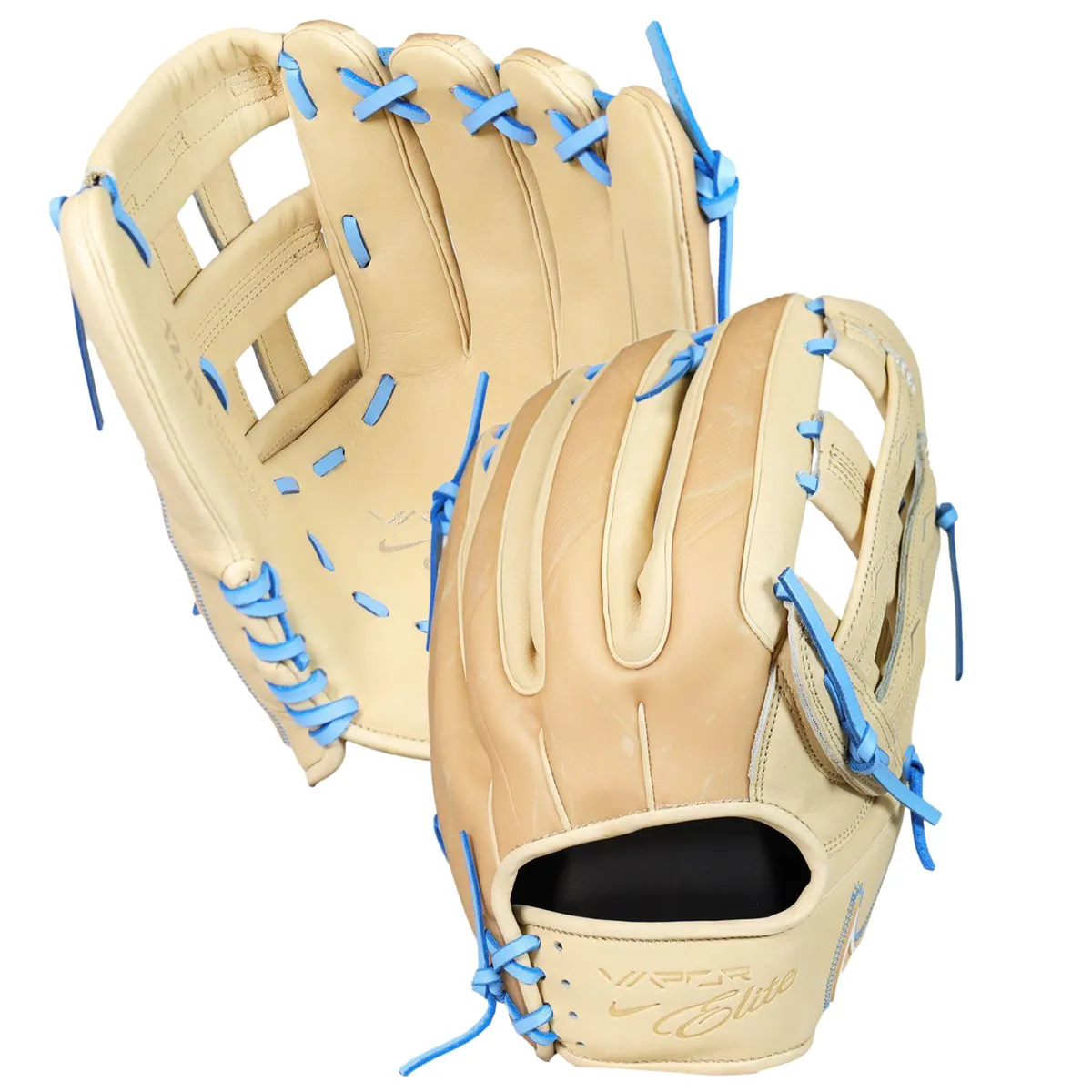 The Nike Vapor Elite 12.75" Outfield Glove is expertly crafted for outfielders seeking a blend of style and performance. Featuring a striking blonde and Columbia blue colorway and a durable H-Web design, this glove ensures you stand out on the field. Its full-grain leather construction offers a premium feel, while the deep pocket depth aids in catching and securing the ball with ease. Enhanced with NIKE Drag-On textured fingertips, it reduces wear and maintains form, while moisture control technology wicks away sweat for enduring comfort and durability. Designed for a comfort fit, this glove provides optimal flexibility and control, empowering you to make every play with confidence.