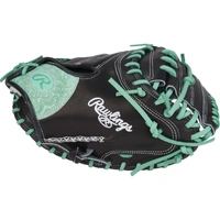 Take command behind the plate with the Rawlings Pro Preferred 33-Inch Catcher’s Mitt, engineered for elite-level framing, blocking, and pop time. With its striking Black and Mint colorway, this mitt makes a bold statement while delivering flawless performance. The CM33 pattern features a slightly deeper pocket, perfect for receiving high-velocity pitches while maintaining quick transfers and precise control. The 1-Piece Solid Web adds extra strength and concealment, ideal for catching with confidence inning after inning. Crafted from the finest kip leather, the Pro Preferred series delivers a luxurious feel, superior durability, and excellent shape retention. Inside, Pittards sheepskin palm lining wicks moisture to keep your hand dry and comfortable, while 100% wool padding and a padded thumb sleeve ensure soft structure and long-term performance. Gear up like a pro and own the game with the Rawlings Pro Preferred 33-Inch Catcher’s Mitt.