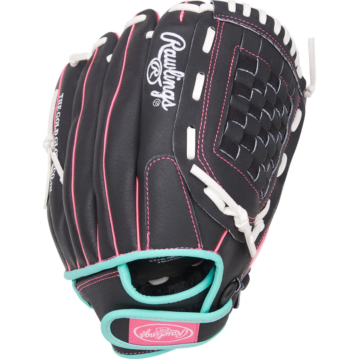 The Rawlings Sure Catch 12-Inch Youth Softball Glove is perfect for young players ready to level up their game. This glove features a durable Basket Web® design and a soft, all-leather shell that enhances control and pocket shape. With the Sure Catch heel cutout, players can close the glove more easily, boosting their confidence on every play. In addition, the cushioned finger linings offer extra comfort and feel, making it ideal for game days and long practices. Finished in a bold Black and Mint colorway, this glove looks as good as it performs. Help your athlete build skills with the Rawlings Sure Catch 12-Inch Youth Softball Glove.