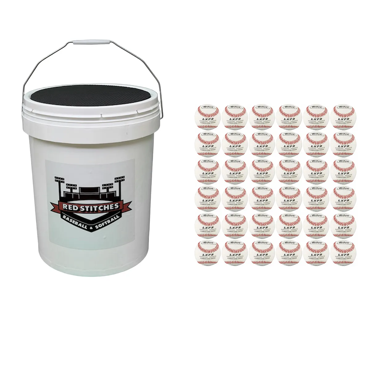 • Red Stitches Bucket Of Baseballs | 3 Dozen