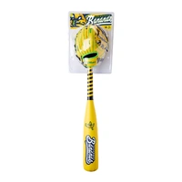 A bundle of fun, all in one. This glove, ball and bat kit includes an A200™ EZ Catch™ Savannah Bananas 10” T-Ball Glove, along with a cotton-stuffed ball and foam bat.